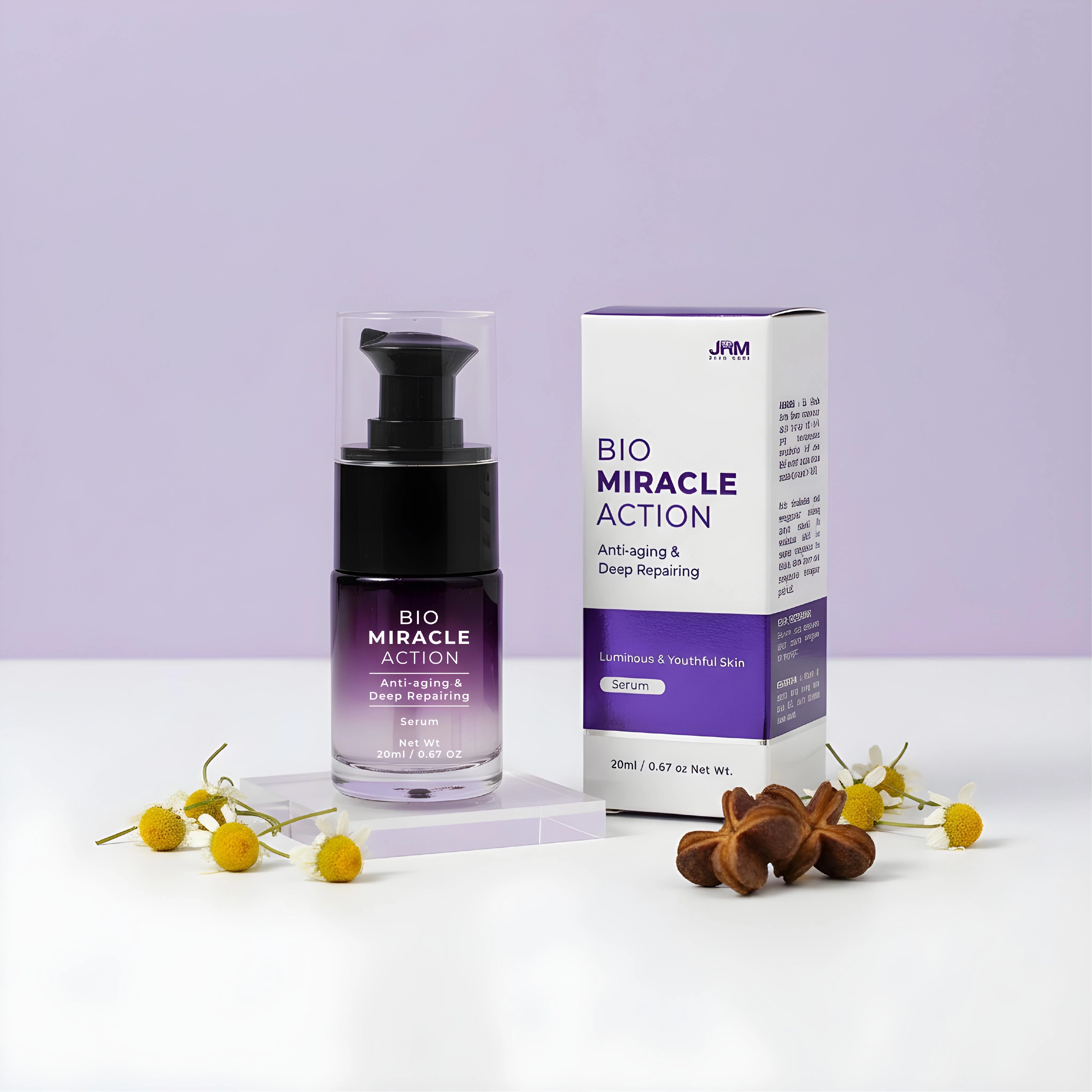 Bio Miracle Action mempunyai krim dan serum dan diformulasikan dari gabungan herba mewah antarabangsa seperti Biji Sacha inchi, Papain (betik), Epal, Buah Zaitun, Bunga Spilanthes Acmella, Rosemary, Gamat serta banyak lagi.