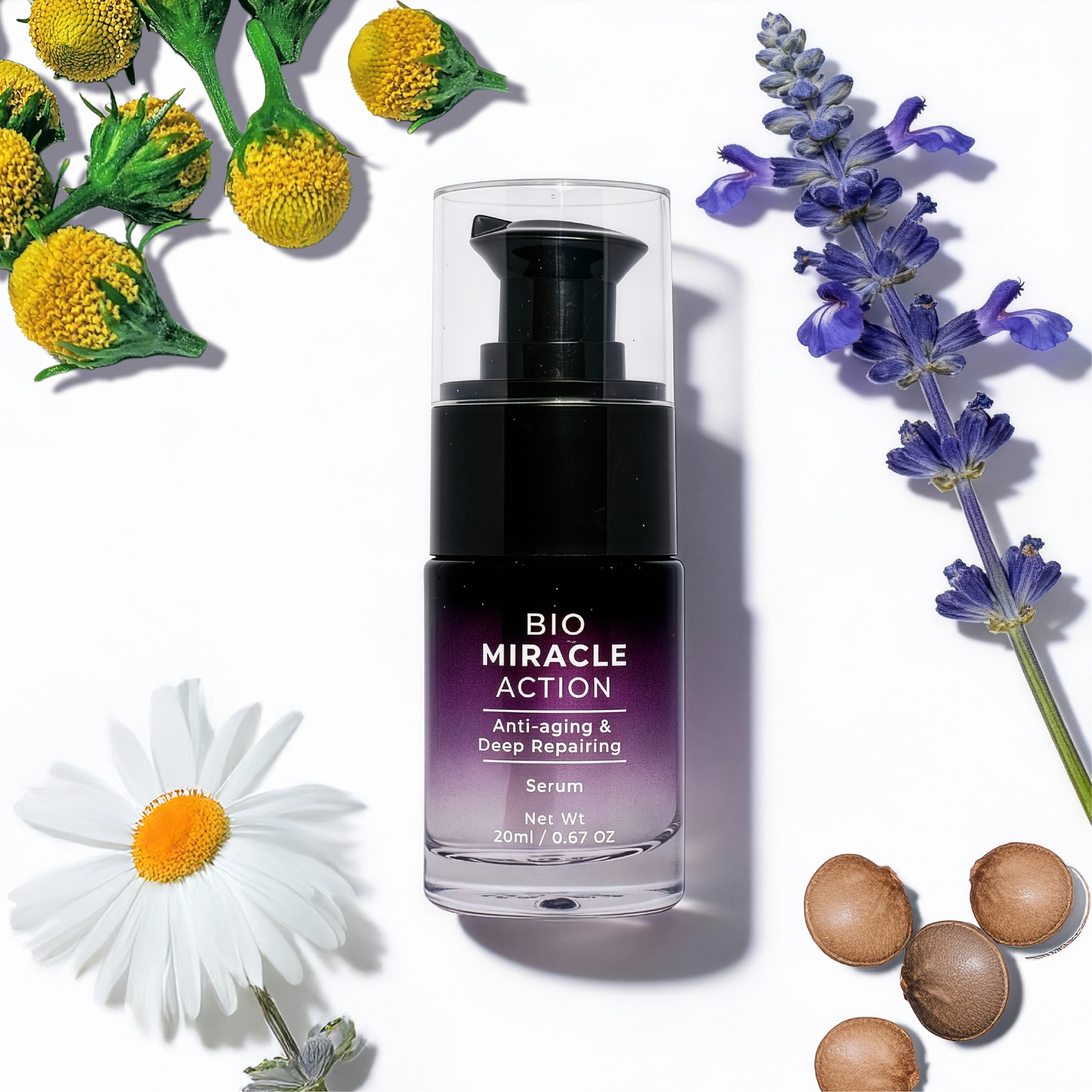 Bio Miracle Action mempunyai krim dan serum dan diformulasikan dari gabungan herba mewah antarabangsa seperti Biji Sacha inchi, Papain (betik), Epal, Buah Zaitun, Bunga Spilanthes Acmella, Rosemary, Gamat serta banyak lagi.